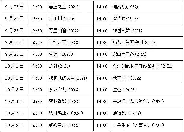 10月6日:《鐵道英雄》(2021)——據(jù)八路軍第115師“魯南鐵道隊”的抗戰(zhàn)事跡改編,還原“鐵道隊”穿鐵軌、扒火車、截物資,用“土辦法”創(chuàng)造以少勝多的抗戰(zhàn)奇跡。